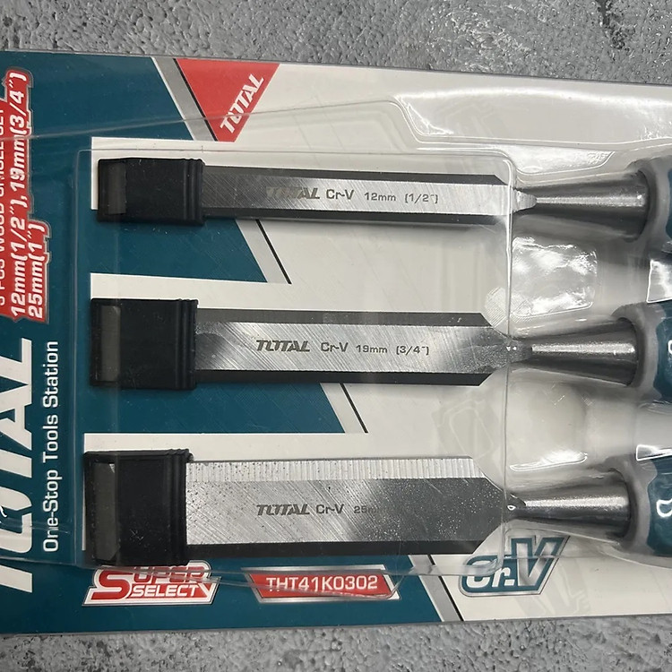 - Tên sản phẩm: Bộ 3 cây đục gỗ làm từ thép CR-V 12-25mm dài 140mm TOTAL THT41K0302