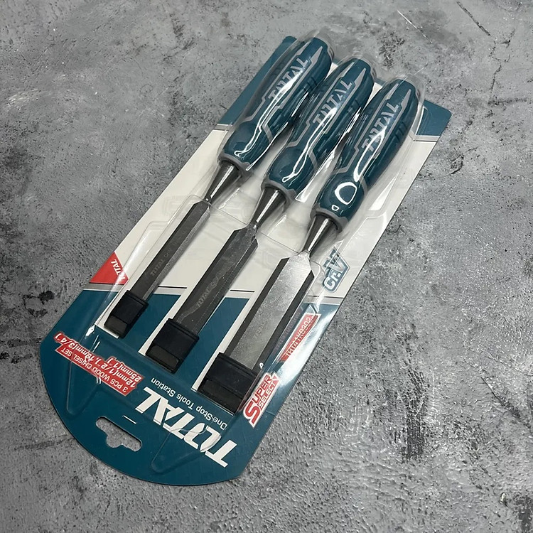 Bộ 3 cây đục gỗ làm từ thép CR-V 12-25mm dài 140mm TOTAL THT41K0302 là một bộ dụng cụ đục có 3 chi tiết với 3 kích thước khác nhau từ 12mm, 19mm và 25mm với chiều dài thân thép lên đến 140mm. Rất phù hợp cho các thợ mộc, thợ điêu khắc và sản xuất đồ thủ công mỹ nghệ
