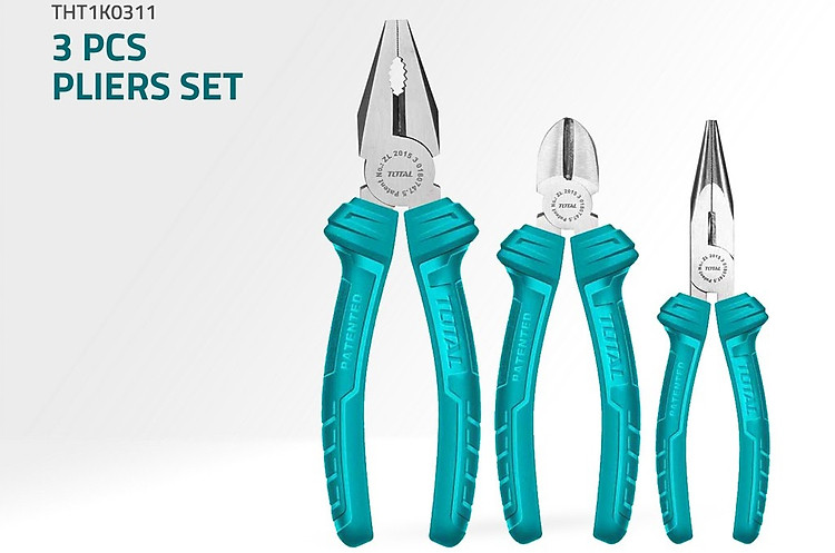 Bộ 3 kềm răng, kềm cắt và kềm mũi nhọn TOTAL THT1K0311 có 3 kềm bao gồm 1 kềm răng 7 inches, kềm mũi nhọn 6 inches và kềm cắt 6 inches đều được đánh bóng và chống gỉ sét