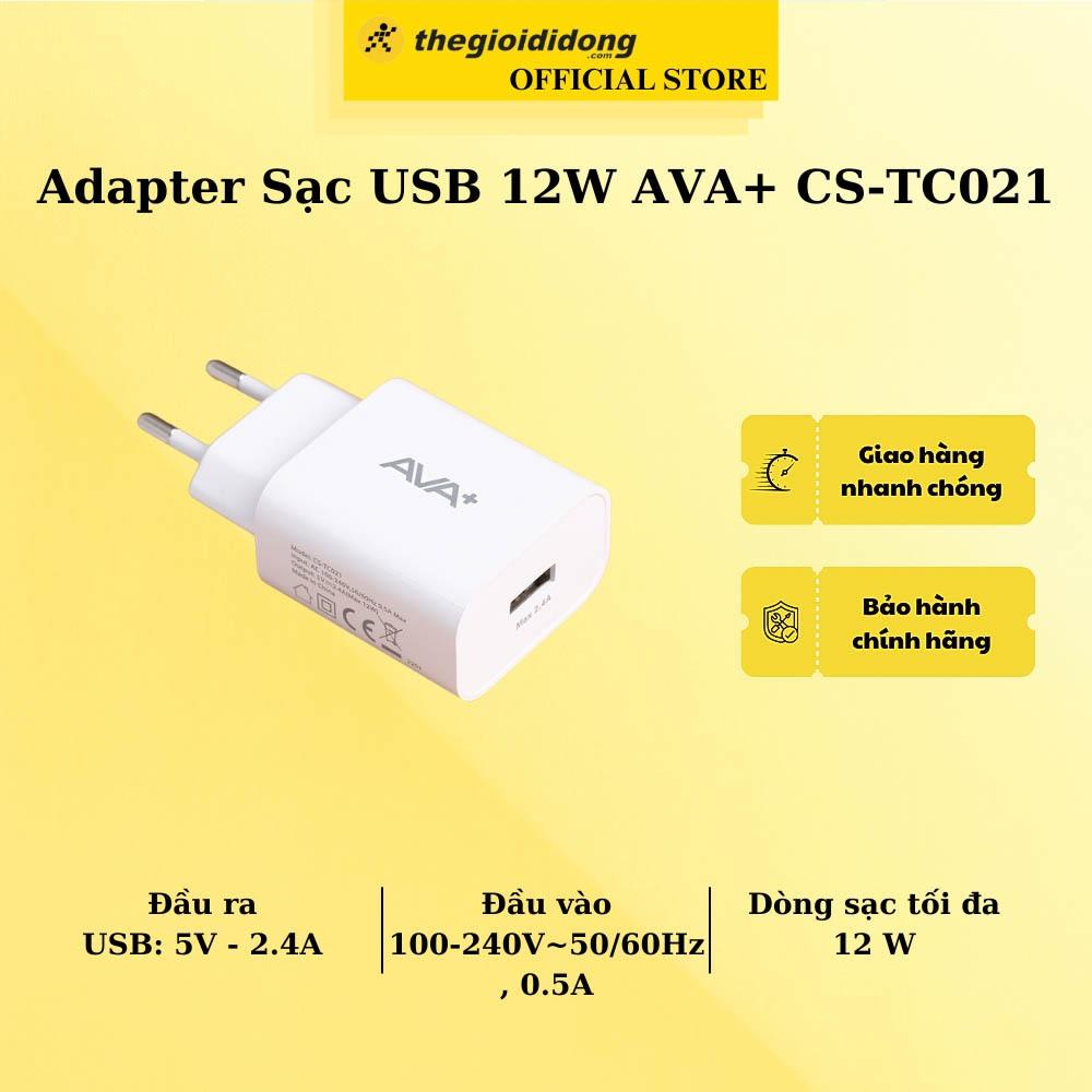 Adapter Sạc USB 12W AVA+ CS-TC021 Trắng sở hữu thiết kế gọn gàng, đẹp mắt, sử dụng cùng cáp sạc để cung cấp nguồn điện cho các thiết bị điện tử của bạn.