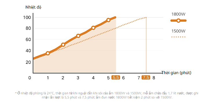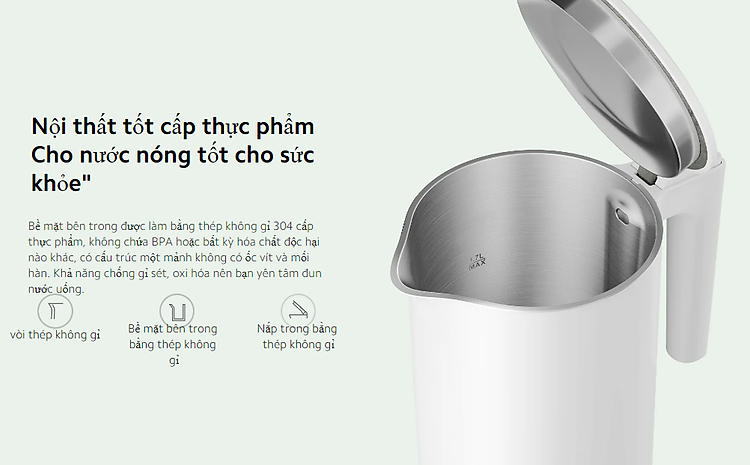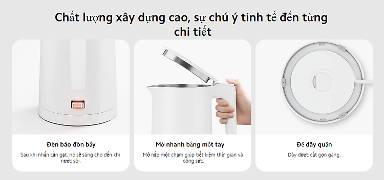Xiaomi Electric Kettle 2 tích hợp mâm nhiệt với công suất 1800W, giúp đun sôi nhanh hơn và rút ngắn thời gian chờ đợi.