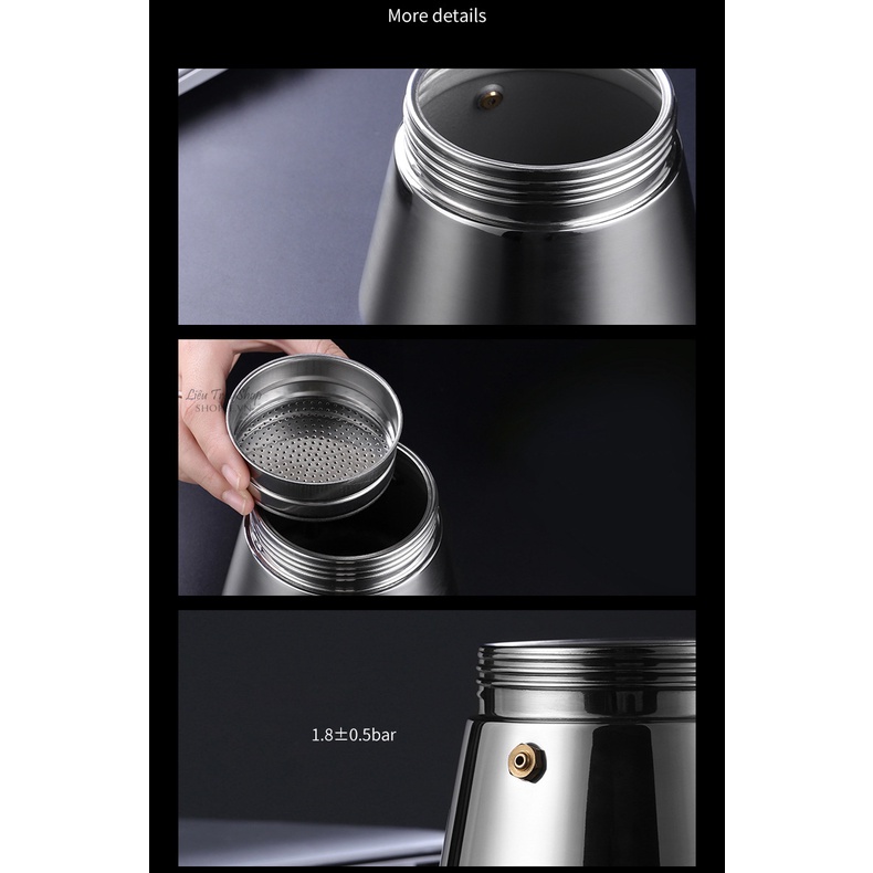 Ấm Moka pot pha cafe thủy tinh đun bếp từ cao cấp inox 304 pha cà phê espresso phong cách Ý