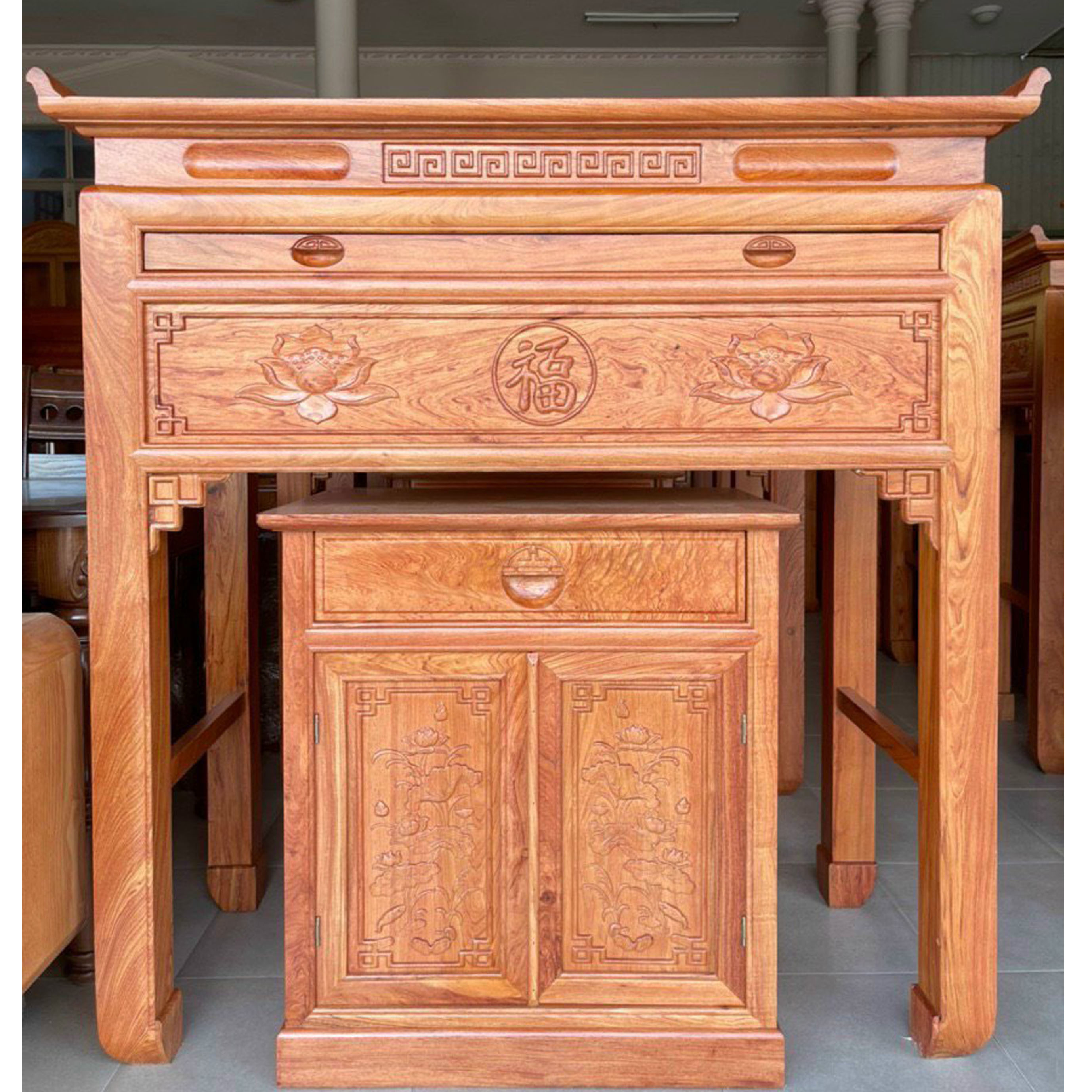 - Bàn cúng được thiết kế nhỏ gọn có thể đẩy vào bên trong bàn thờ khi không dùng đến.