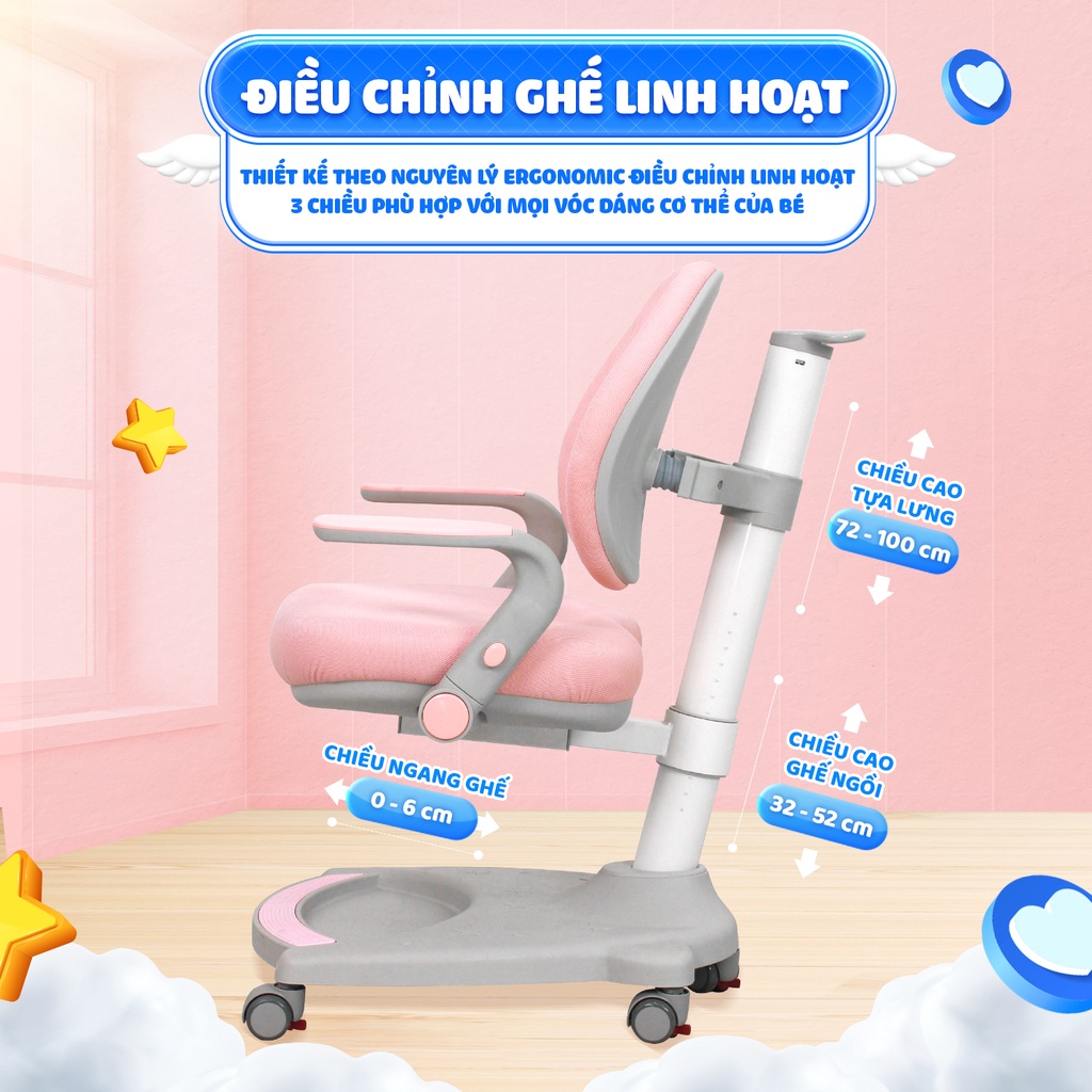 Cả 3 dòng bàn học của Chilux đểu có thể điều chỉnh được chiều cao của chân bàn, từ đó mặt bàn có chiều cao điều chỉnh được từ 53cm đến 77cm so với mặt đất. Kết hợp với ghế ngồi đúng tư thế cũng điều chỉnh từ 35-56cm sẽ giúp sản phẩm phù hợp với nhiều độ tuổi của bé khác nhau, giúp bé ngồi học đúng tư thế