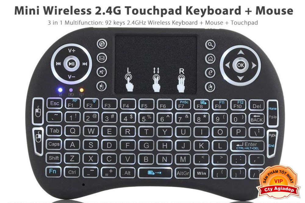 92 phím, bàn phím không dây 2.4GHz. điều khiển không dây từ xa lên đến 30m
