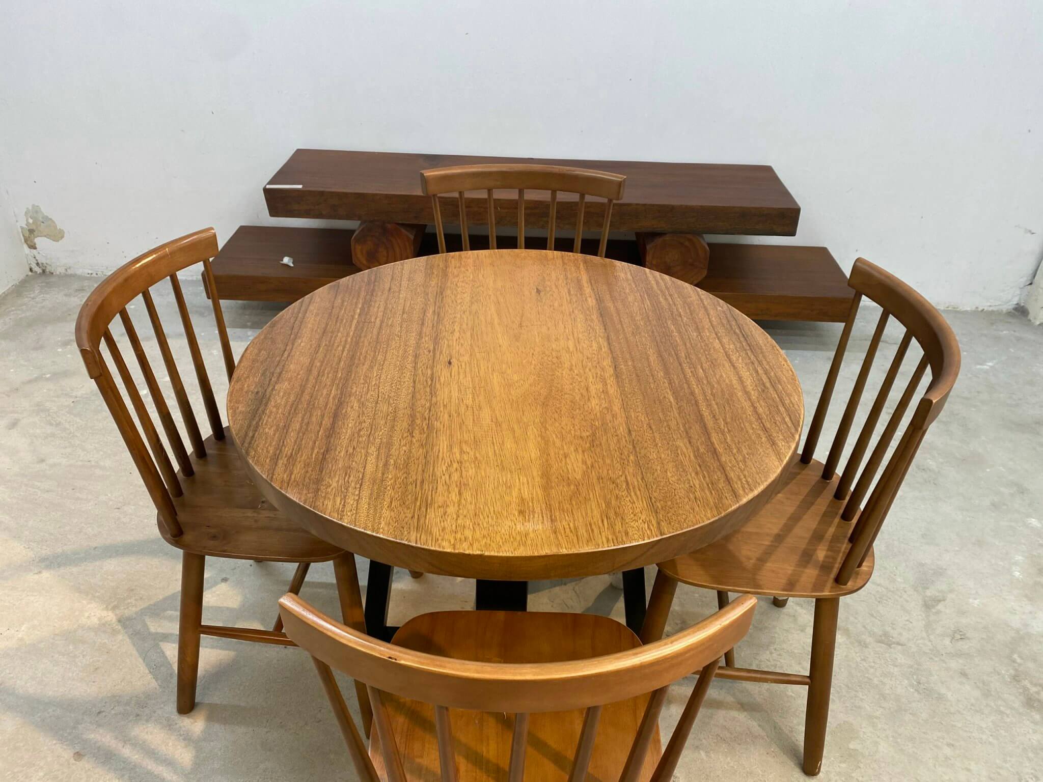 Bàn gỗ lim nâu nguyên tấm cạnh tròn.