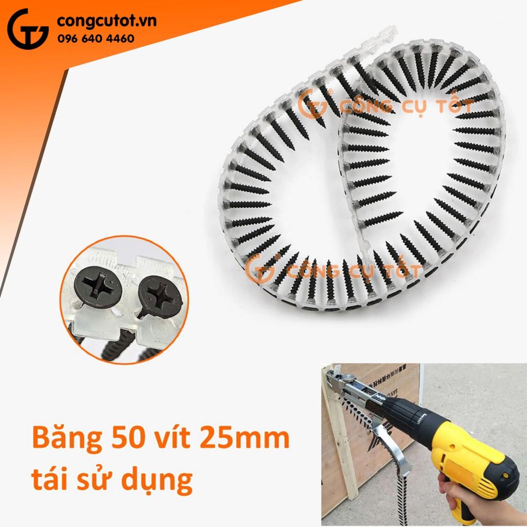 Băng vít 25mm có sẵn vít, có thể tái nạp vít cho máy bắt vít liên tục là phụ kiện cho bộ kit bắn vít liên hoàn, tiết kiệm được rất nhiều công sức, thời gian và chi phí sử dụng.