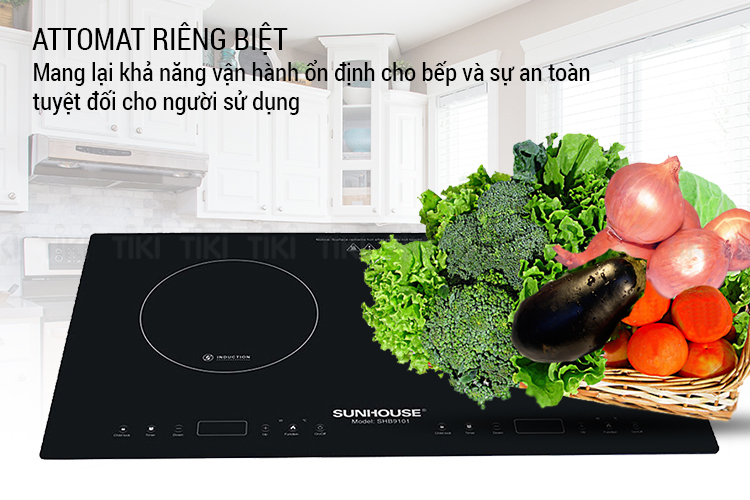 | Lưu ý | Bếp đôi điện từ SUNHOUSE SHB9101 không sử dụng phích cắm trực tiếp vào nguồn điện chung trong gia đình đình mà phải kết nối thông qua 1 aptomat riêng biệt.(Sản phẩm không đi kèm aptomat) |