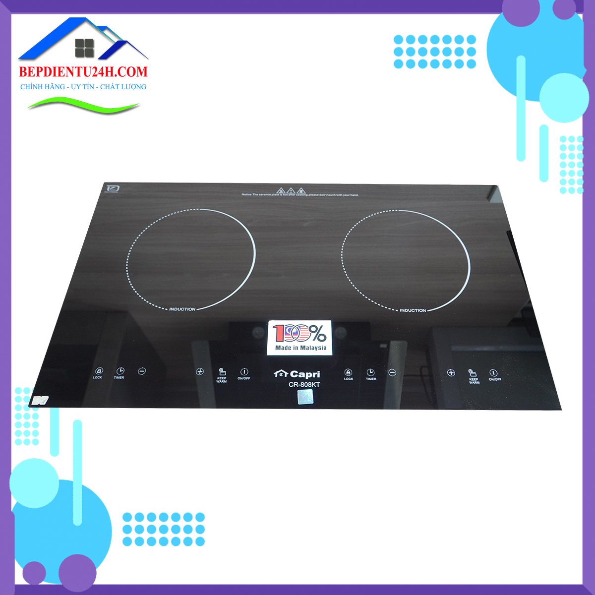 - Bếp điện từ đôi Capri CR-808KT thuộc dòng bếp từ thế hệ mới của Capri, được sản xuất trên dây chuyền công nghệ hiện đại theo tiêu chuẩn của châu Âu tại Malaysia.