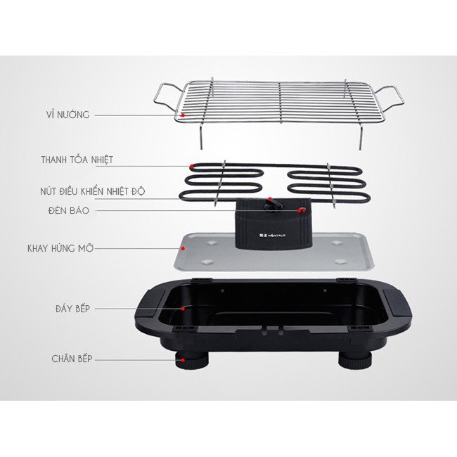 ❷ Cấu tạo của Electric Barbecue Grill khá đơn giản bao gồm cụm điện trở, bộ phận khay nướng và vỉ nướng. Do đó, bạn hoàn toàn dễ dàng tháo lắp, vệ sinh sản phẩm.Ưu điểm mặt vỉ nướng chống dính chất lượng cao, có rãnh giúp giảm bớt lượng dầu mỡ thừa, những chiếc bếp nướng này cho bạn những món nướng không chỉ thơm ngon sạch sẽ mà còn không gây hại cho sức khỏe.