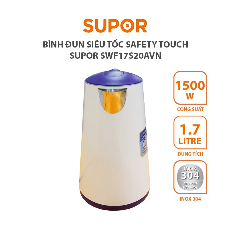 Thiết Bị Điện Gia Dụng > Đồ gia dụng nhà bếp > Ấm đun siêu tốc || Bình đun siêu tốc Safety Touch Supor SWF17S20AVN