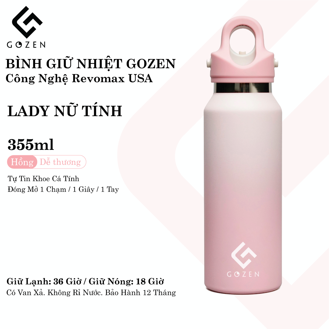 - Bình giữ nhiệt mini GOZEN LADY nữ tính công nghệ REVOMAX USA sẵn sàng phục vụ một nửa thế giới. Vì hạnh phúc của bạn.