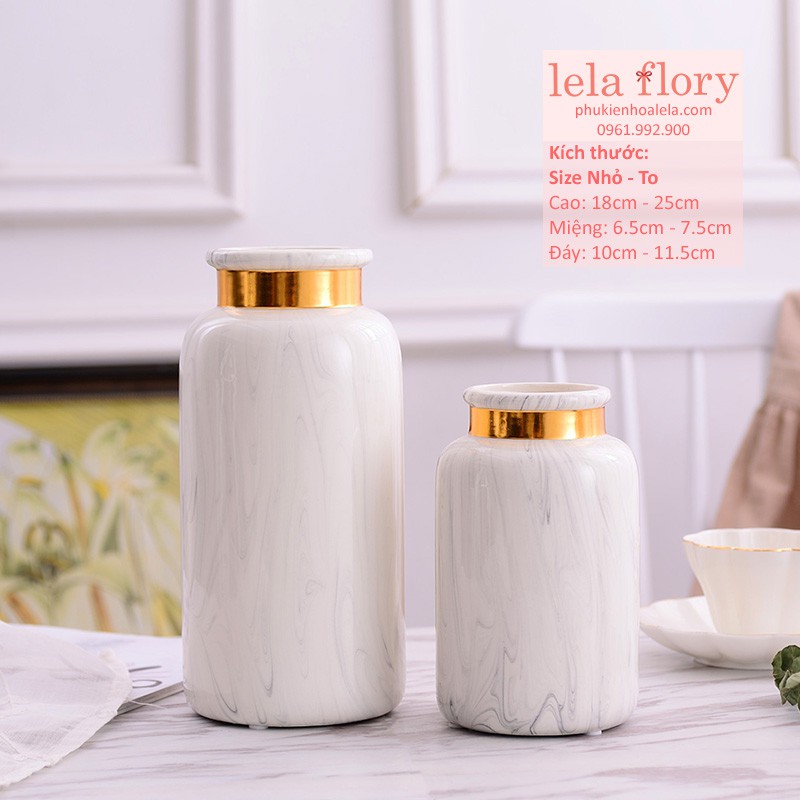 Bình gốm sứ cẩm thạch cổ gold màu trắng - LOH0305