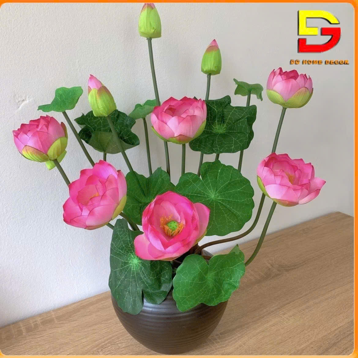Bình Hoa Sen Lụa Cao Cấp Hoa Giả Decor Cao 50cm Trang Trí Bàn Trà Kệ Tủ DG-181.