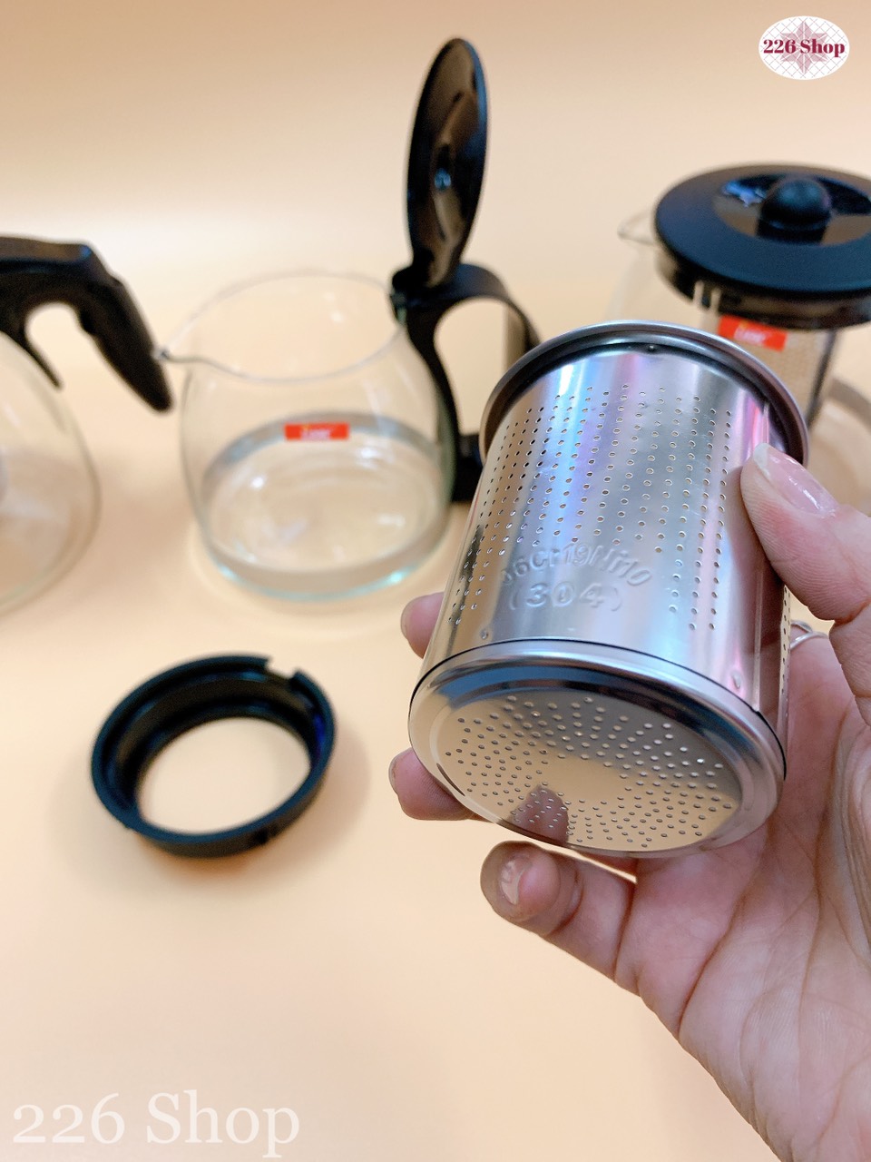 | Hướng dẫn sử dụng | Bước 1: Rửa sạch bằng nước ấm, để khô ráo.Bước 2: Đổ trà vào thân bình hoặc lõi lọc.Bước 3: Đổ nước nóng trực tiếp vào bình để ngâm trà một thời gian.Bước 4: Phần lưới lọc inox giúp lọc trà và tránh lá trà hoặc cặn trà li ti rơi vào bình.Bước 5: Rót trà trực tiếp từ miệng bình là sử dụng được rồi ạ. |