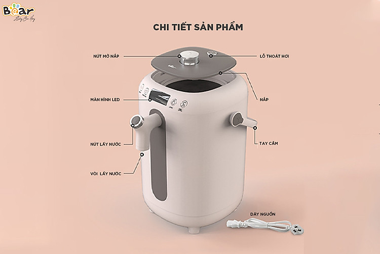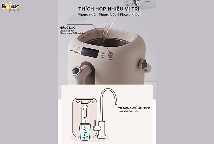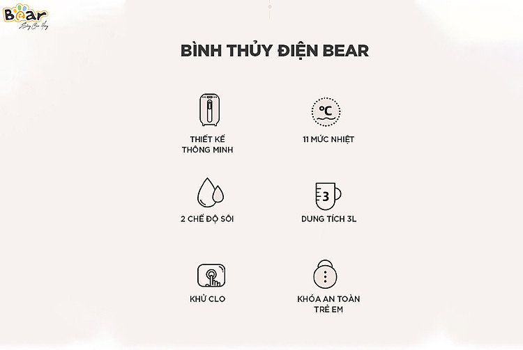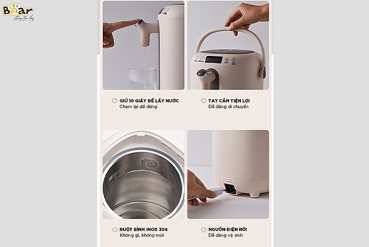 Ngoài tính năng đun sôi và giữ ấm bình thủy điện Bear còn được tích hợp tính năng khử Clo giúp bạn loại bỏ lượng clo thừa trong nước, đảm bảo an toàn hơn khi sử dụng. Nếu bạn đang tìm kiếm một sản phẩm chăm sóc sức khỏe nguồn nước cho gia đình thì bình thủy điện Bear chắc chắn là một gợi ý không thể bỏ qua.