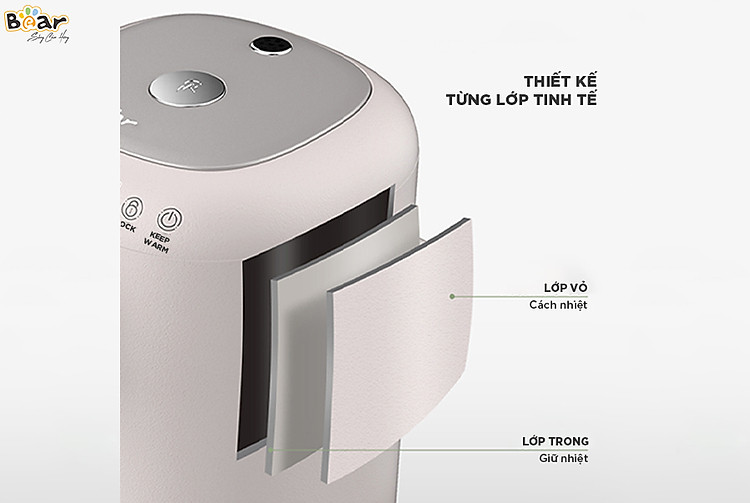 Ruột nồi được làm từ inox 304 chống gỉ và an toàn tuyệt đối khi dùng. Bình thủy điện Bear có dung tích bình 3 lít phù hợp dùng trong gia đình từ 3 - 5 người, sử dụng cả ngày dài mà không cần thêm nước, tiết kiệm thời gian hơn.