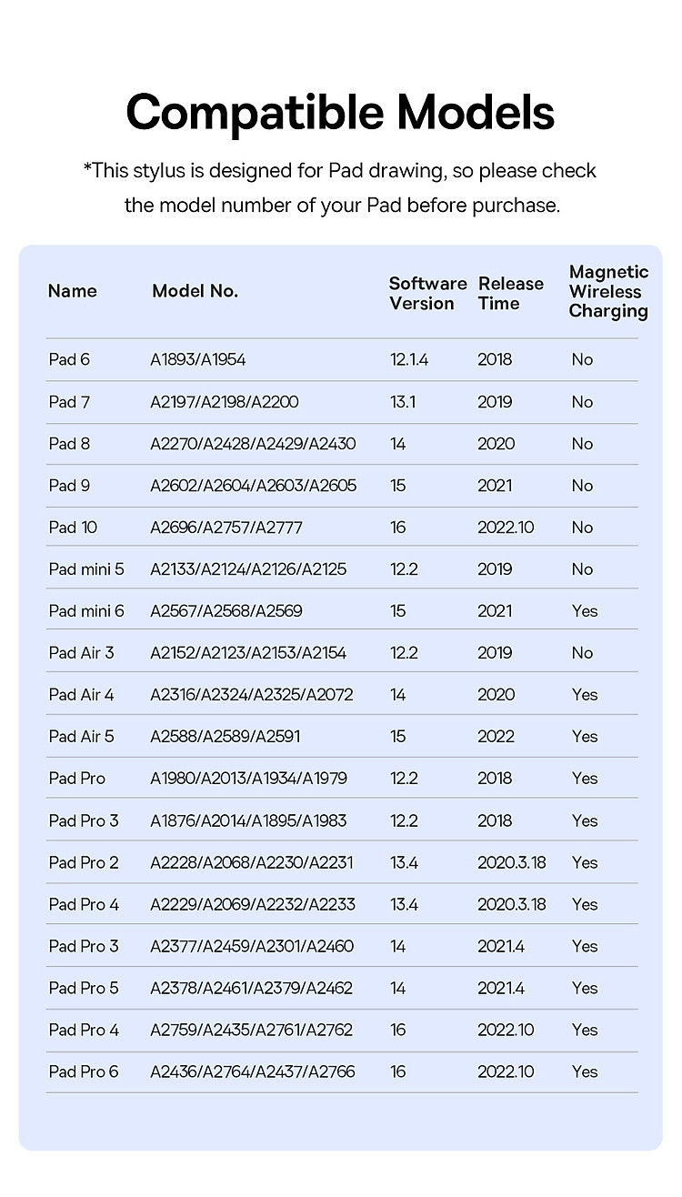Lưu ý: Bút chỉ tương thích các thiết bị iPad từ 2018 trở lên