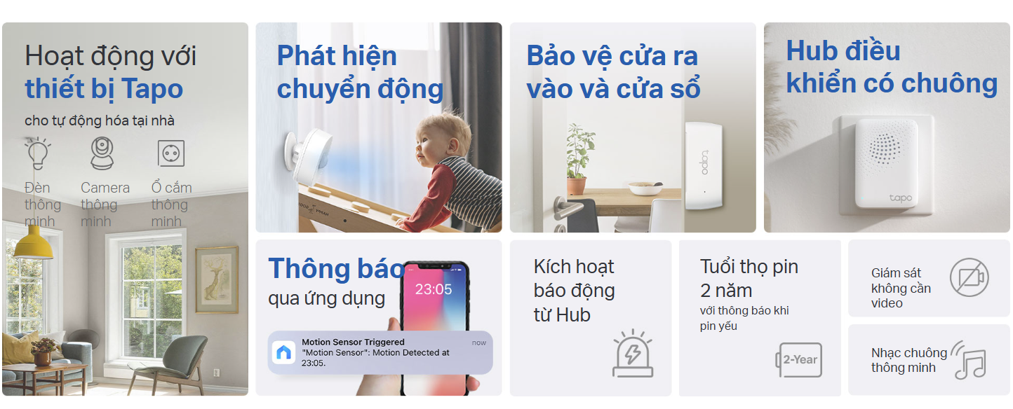 Bộ cảm biến thông minh TP-Link Tapo T30 KIT | Bảo vệ cửa /Phát hiện chuyển động / Chuông báo | App Tapo | Bảo hành 1 năm