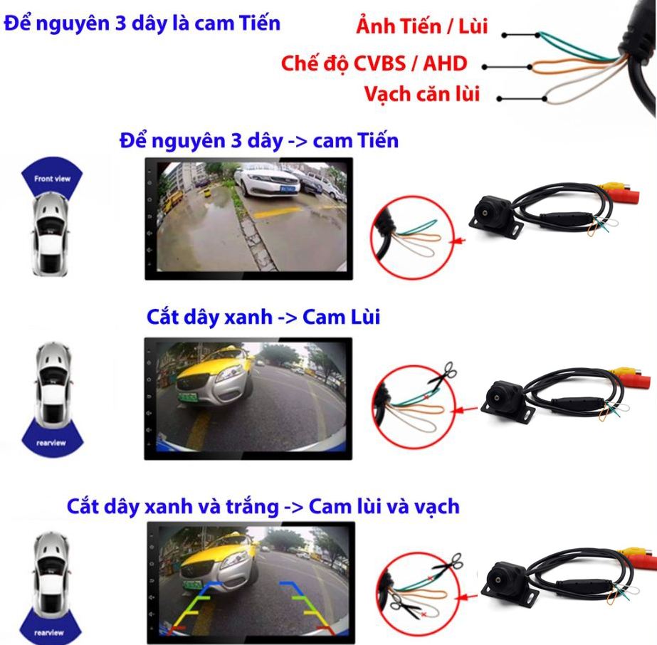 -Tùy thuộc vào lựa chọn cắt dây có thể dùng làm camera lùi,camera căn lề.