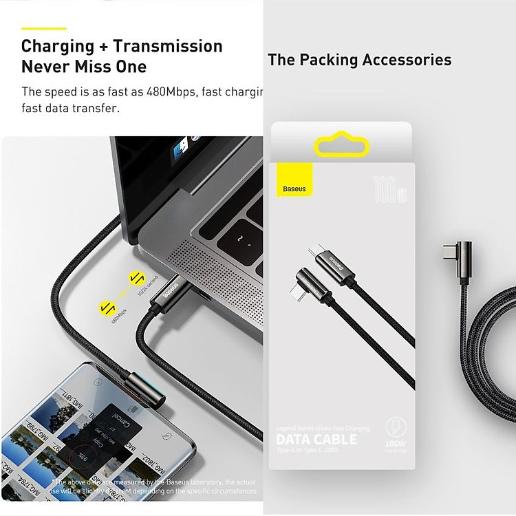 - Cáp sạc nhanh Baseus Legend Series Elbow được thiết kế chuyên dùng để sạc pin và đồng bộ dữ liệu tốc độ cao cho tất cả các dòng Smart-phone/ Tab-let/ Mac-book và các thiết bị số khác hỗ trợ sạc pin qua cổng Type C.