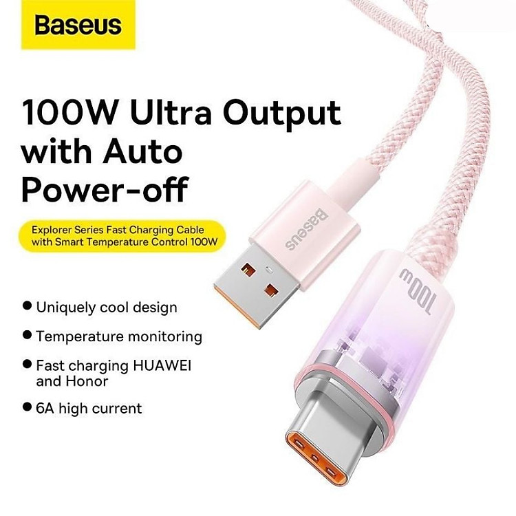 Giới thiệu Cáp sạc nhanh USB to Type-C Baseus Explorer Series Fast Charging Cable with Smart Temperature Control 100W CATS