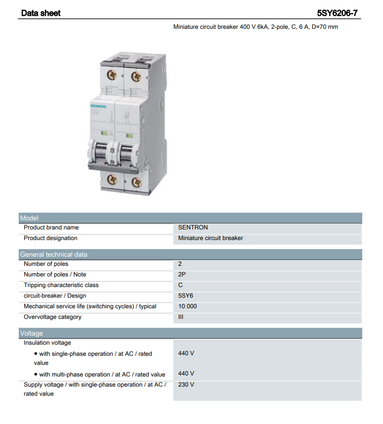 Chức năng | Bảo vệ ngắn mạch và quá tải |