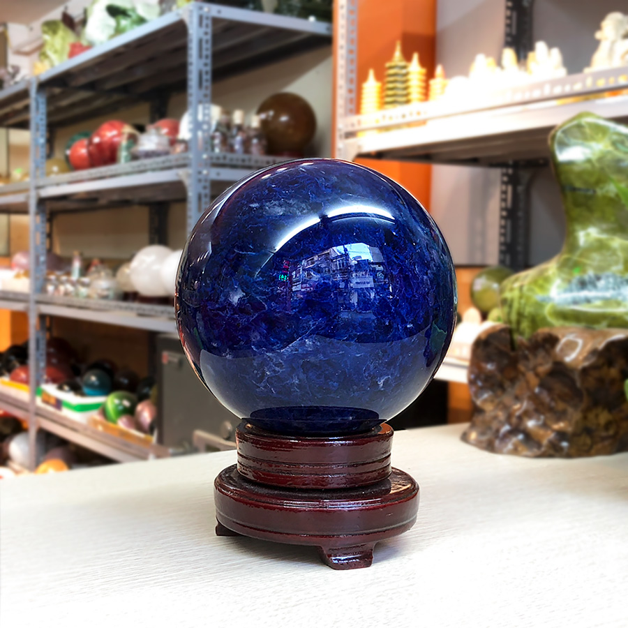 Quả cầu phong thủy đá Obsidian xanh tượng trưng hòa bình - tĩnh lặng, tin cậy. làm cho con người luôn cảm thấy thư thái, bình an.