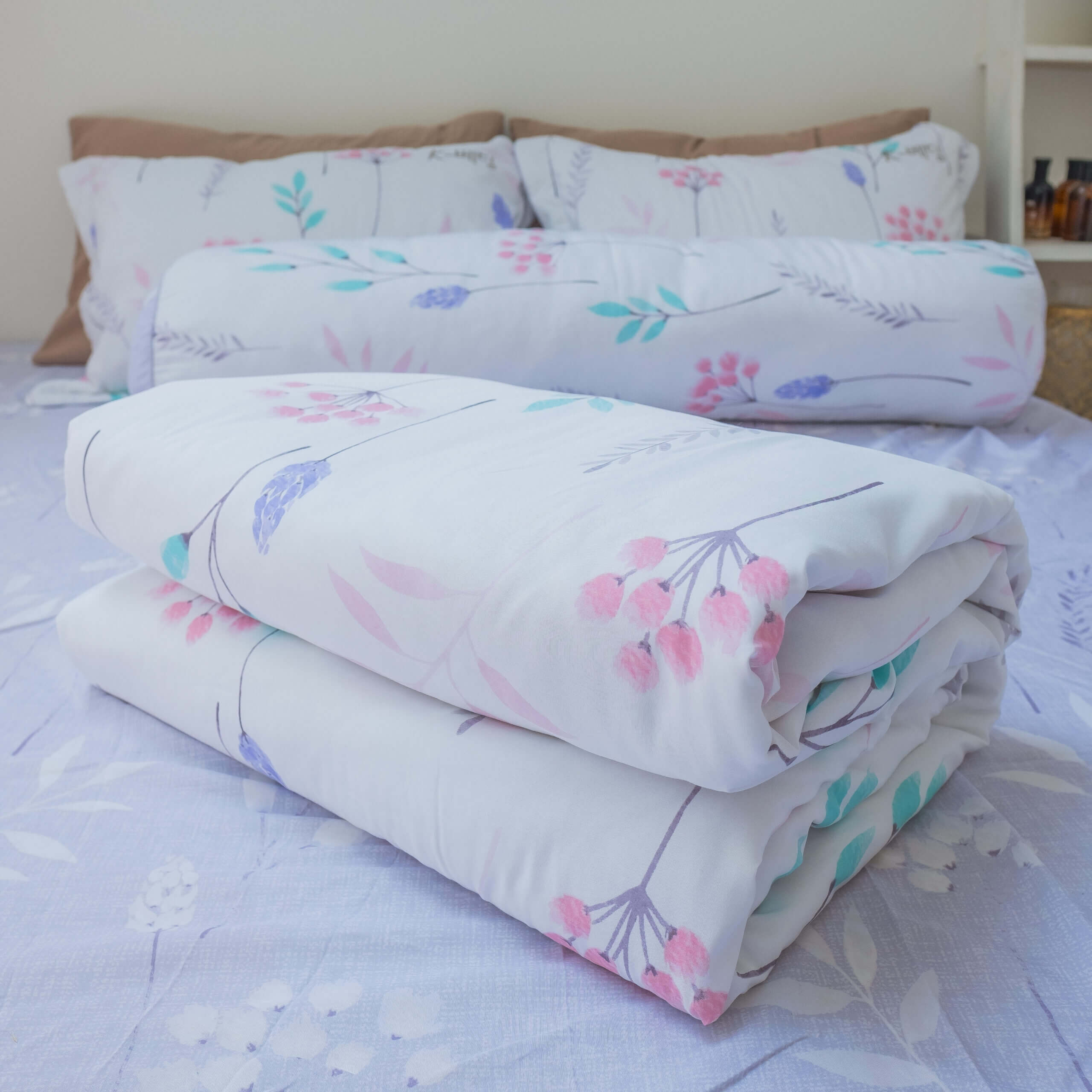 | Hướng dẫn sử dụng | Giặt trước khi sử dụng, ngâm bộ ra vào nước lạnh, xả 2-3 nước cho sạch, không sử dụng bột giặt cho lần giặt đầu tiên.- Ngâm nước lạnh 3-4 tiếng, sau đó bỏ xà phòng vào giặt ngay cho các lần giặt tiếp theo.- Có thể giặt hấp, giặt tay hoặc sử dụng máy giặt ở chế độ nhẹ nhất (dành cho vải mềm)- Phơi ở nơi khô thoáng, tránh phơi dưới nắng mặt trời quá gắt.- Ủi chăn ra sau khi phơi ở nhiệt độ trung bình. |