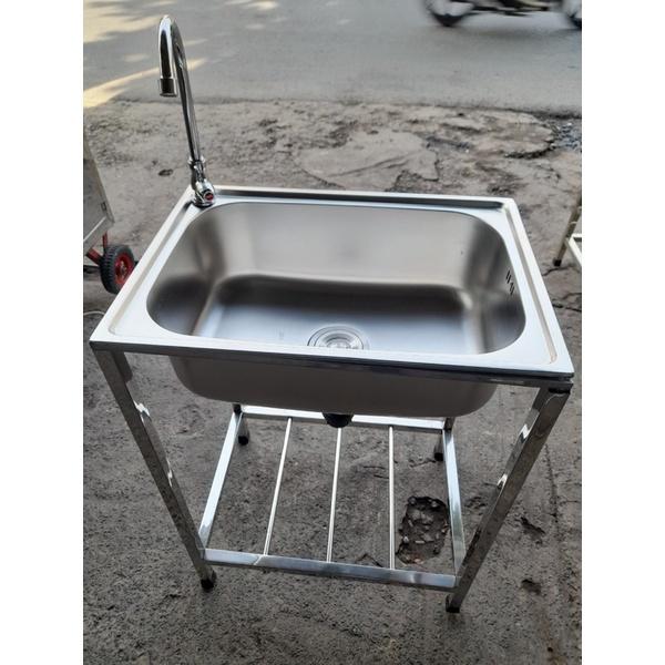 chậu rửa chén inox đơn kt 43x60 (đầy đủ phụ kiện) chất liệu: inox 201, gồm chậu, vòi, bộ xả đi kèm, dây cấp nước ...