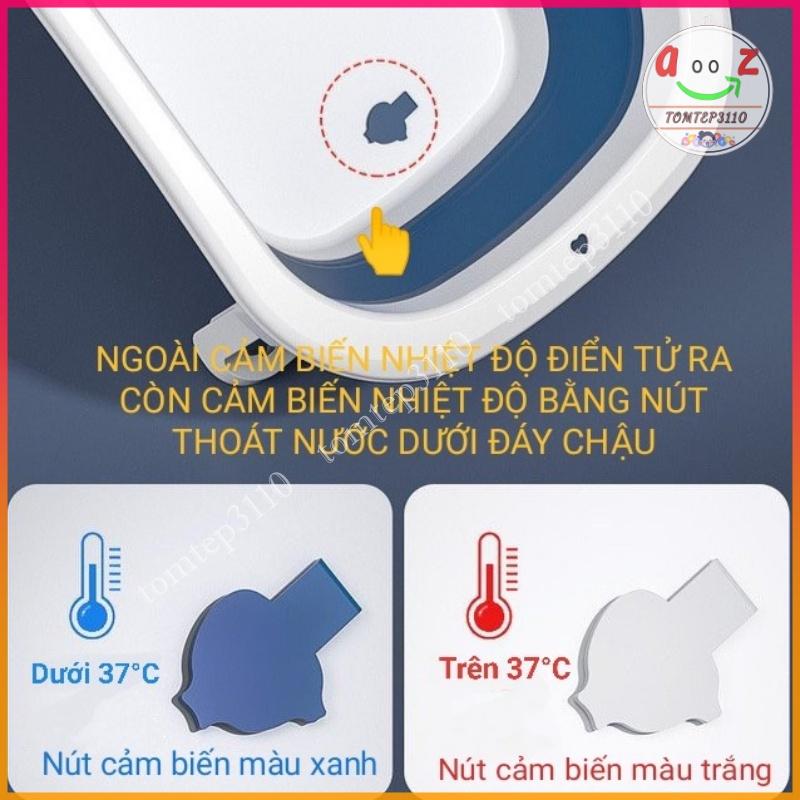 Chậu Tắm Gấp Gọn Kèm Nhiệt Kế Điện Tử Đo Nước - Bồn Tắm Cảm Biến Nhiệt Độ Cho Bé Hàng Cao Cấp Loại 1