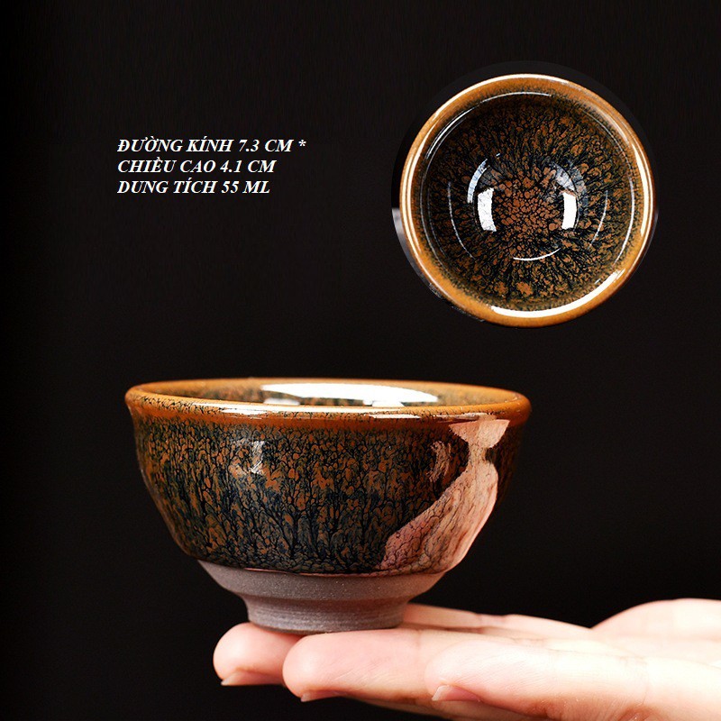 + Chén Thiên Mục được chế tác hoàn toàn thủ công từ tạo hình đến kéo phôi đều do đôi bàn tay hoàn thành, tỉ mỉ cẩn thận. Diêu biến (Biến hóa kỳ ảo từ lò nung) vô cùng khéo léo, 1 do chế tác, 2 do công phu, điều lửa điêu luyện, tự nhiên trở thành kẻ chế tác thuần thục nhất, sắc màu không trùng lặp.