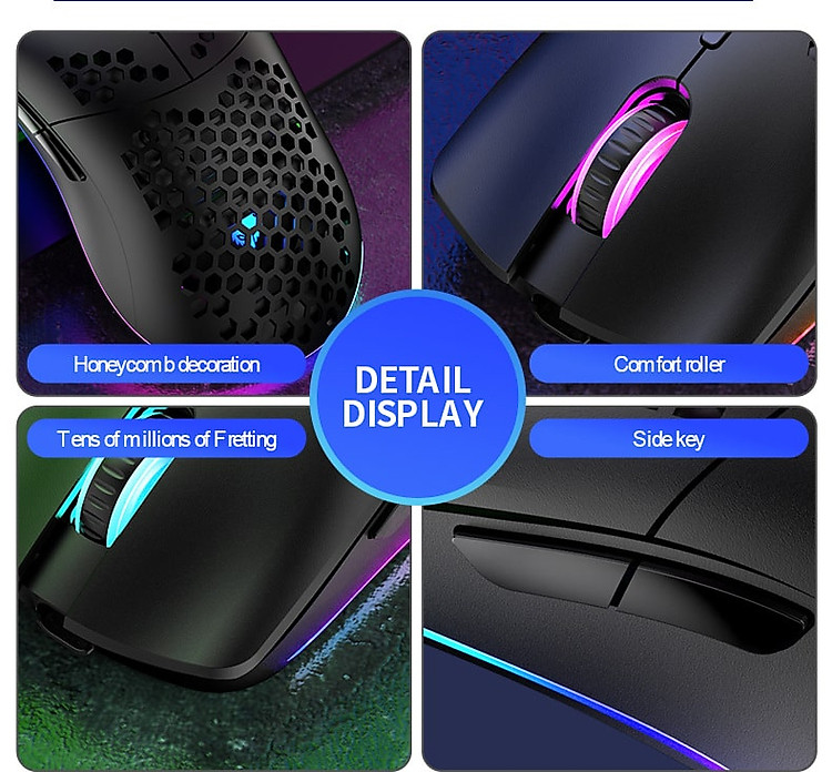 Với hình dạng Ergonomic và thiết kế thoải mái, màu sắc ánh sáng mang đến tuyệt vời hiệu ứng hình ảnh, làm cho nó tuyệt vời Chuột chơi game.