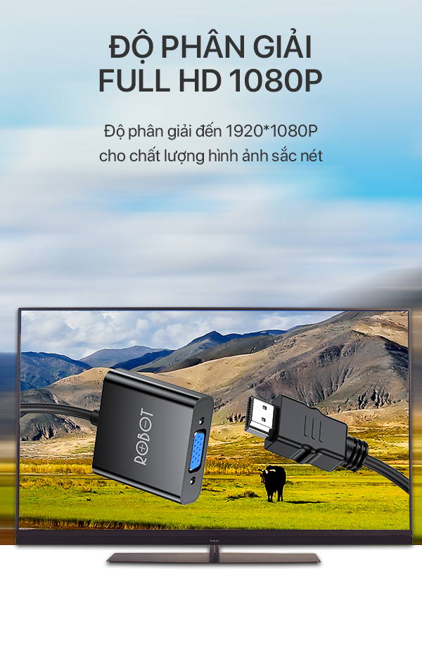 Bộ Chuyển đổi HDMI sang VGA ROBOT RHV10 Độ Phân Giải FULL HD 1080P Kết nối với Máy chiếu TV - Hàng Chính Hãng bảo hành 1 năm