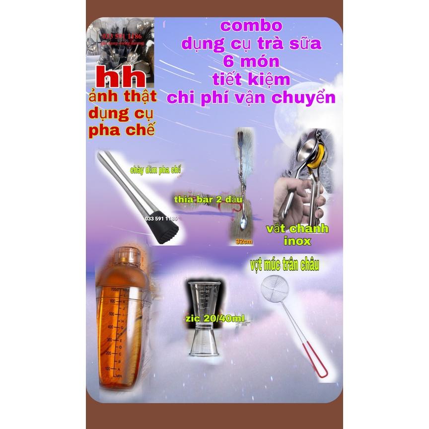Combo 6 món dụng cụ pha chế cần thiết giá chuẩn cho quầy bar pha chế trà sữa, bartender