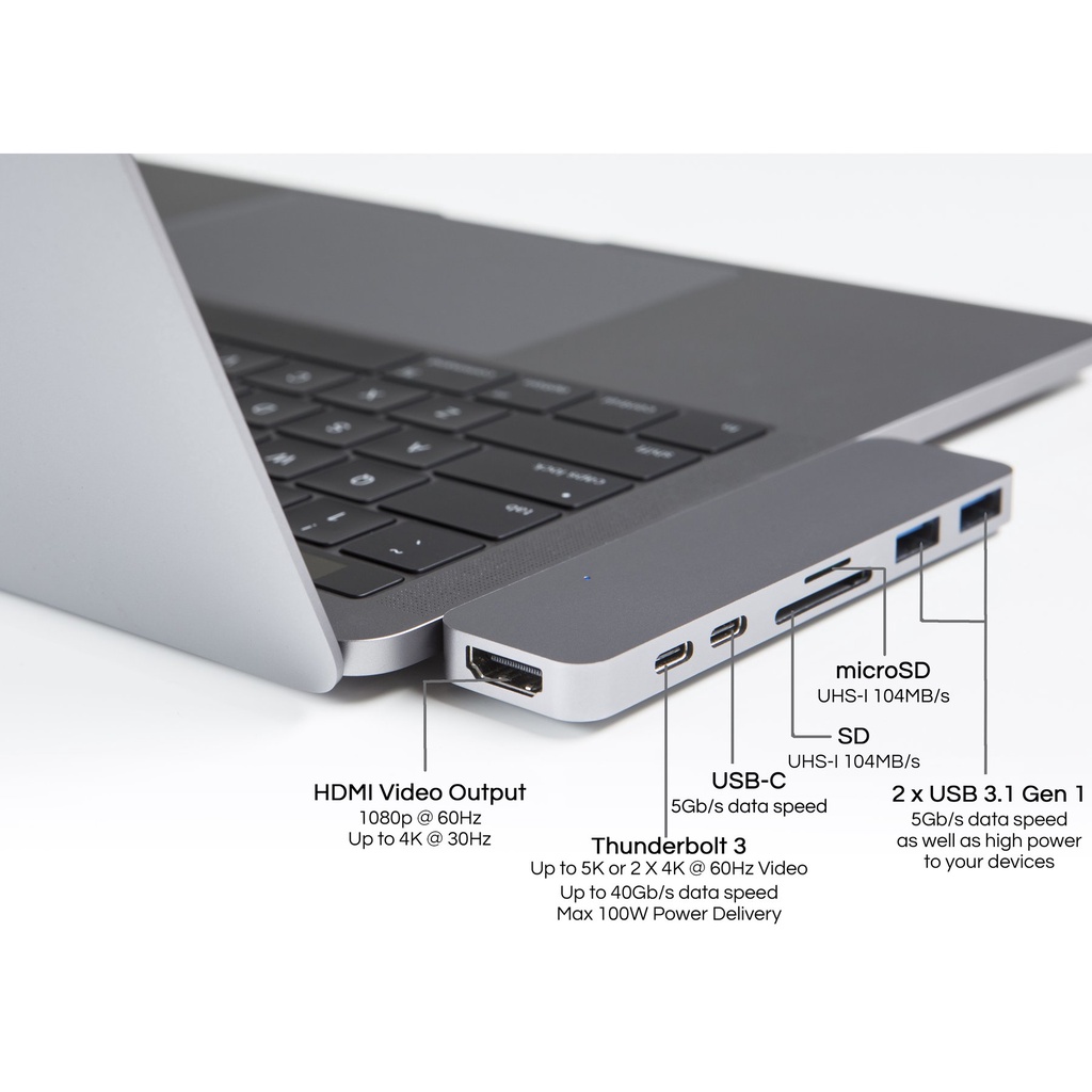Giới thiệu Cổng Chuyển/Hub USB-C Pro 7in2 HDMI 4K, Thunderbolt 3 5K, USB 3.1, USB-C, SD, MicroSD HyperDrive