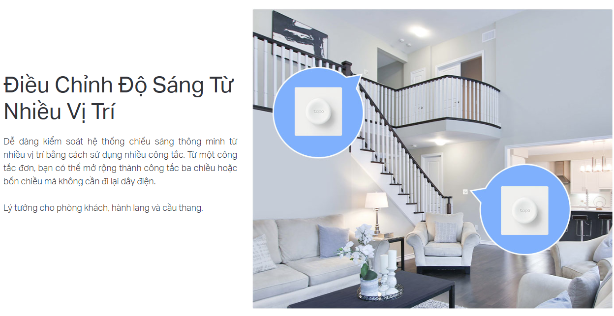 Điều Khiển Từ Nhiều Vị Trí – Kiểm soát đèn thông minh từ nhiều vị trí với nhiều công tắc điều chỉnh độ sáng.