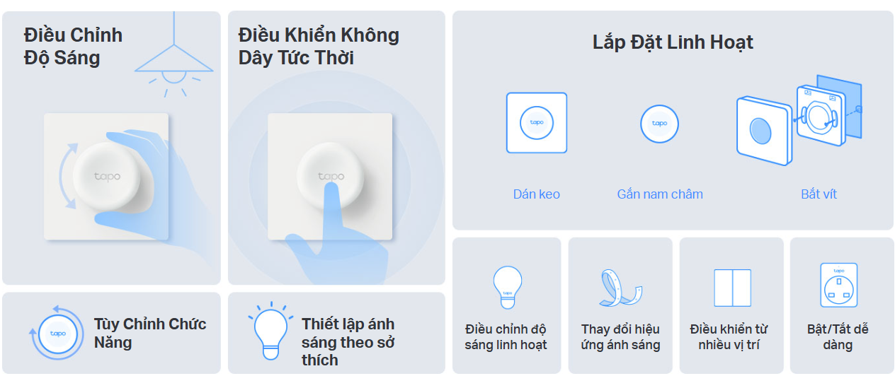 Lắp Đặt Linh Hoạt – Đặt công tắc điều khiển đèn từ xa ở bất cứ đâu để luôn trong tầm tay.