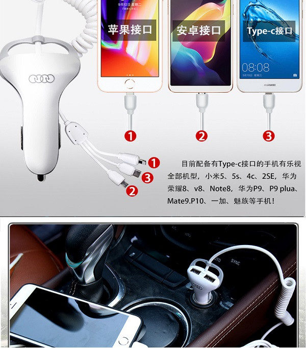 Qua nghiên cứu tình hình thực tế cho thấy phần lớn điện thoại, smartphone thường dùng 3 loại cáp phổ biến là Lightning (chuyên dùng cho iPhone, iPad), Micro USB (chuyên dùng cho điện thoại, smartphone thông thường), USB Type C (chuyên dùng cho smartphone đời mới), do vậy luôn mang bên mình cùng một lúc 3 sợi dây cáp này là một phiền phức. Do vậy hãng sản xuất đã cho ra loại củ sạc liền dây sạc bọc nhựa mềm TPE cao cấp và 3 đầu ra là Lightning, Micro USB, Type C cực kỳ tiện lợi, chắc chắn và vô cùng chất lượng vì đều có gắn chip bảo vệ an toàn cho người dùng đó là Bộ củ sạc điện thoại đa năng cho xe hơi với 3 đầu sạc và 2 cổng cắm USB - Dài 1,5m - AL5015.