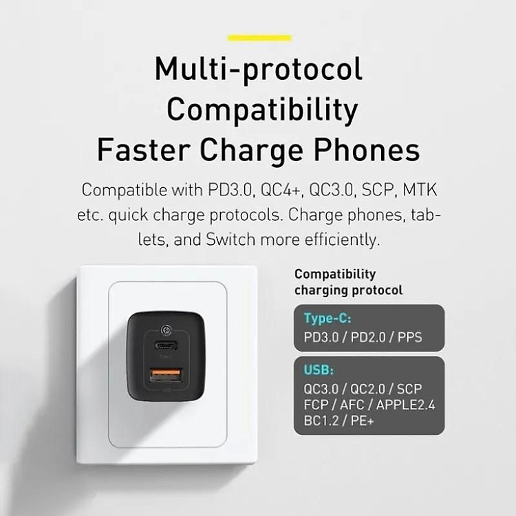 Giới thiệu sản phẩm Củ sạc siêu nhanh, nhỏ gọn Baseus GaN2 Lite Quick Charger 65W (Type C+ USB Port , PD3.0/ PPS/ QC4.0/ SCP/ FCP Multi Quick Charge Protocol, GaN2 Technology)