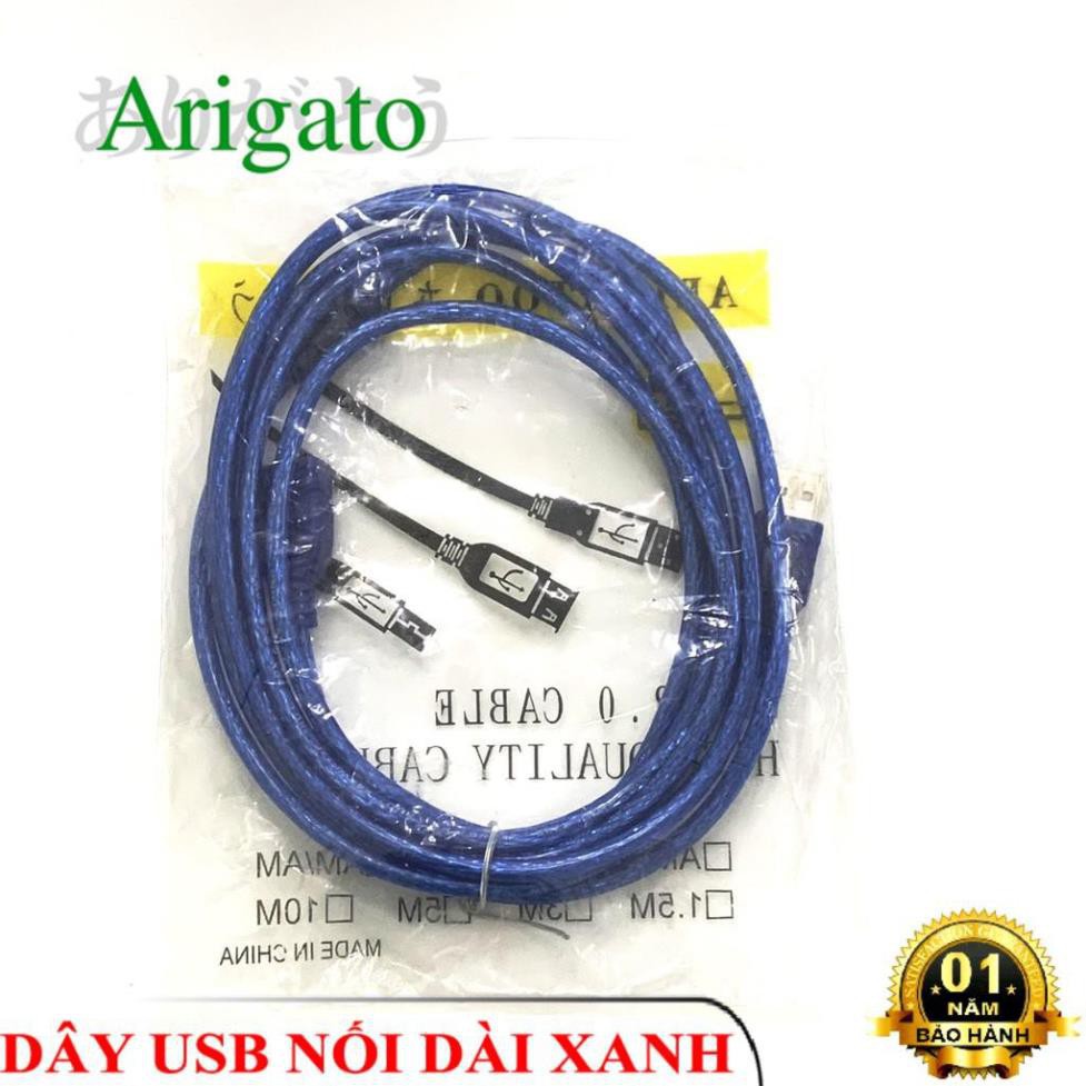 Giới thiệu Dây USB Nối Dài 1.5m 3m 5m 10m Xanh Arigato Chống Nhiễu Tốt. Kết Nối USB Chuẩn 2.0