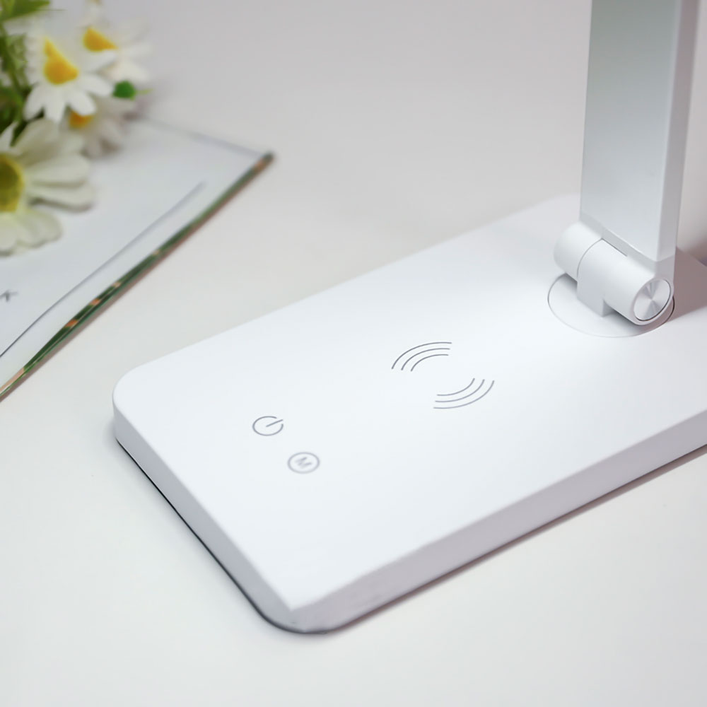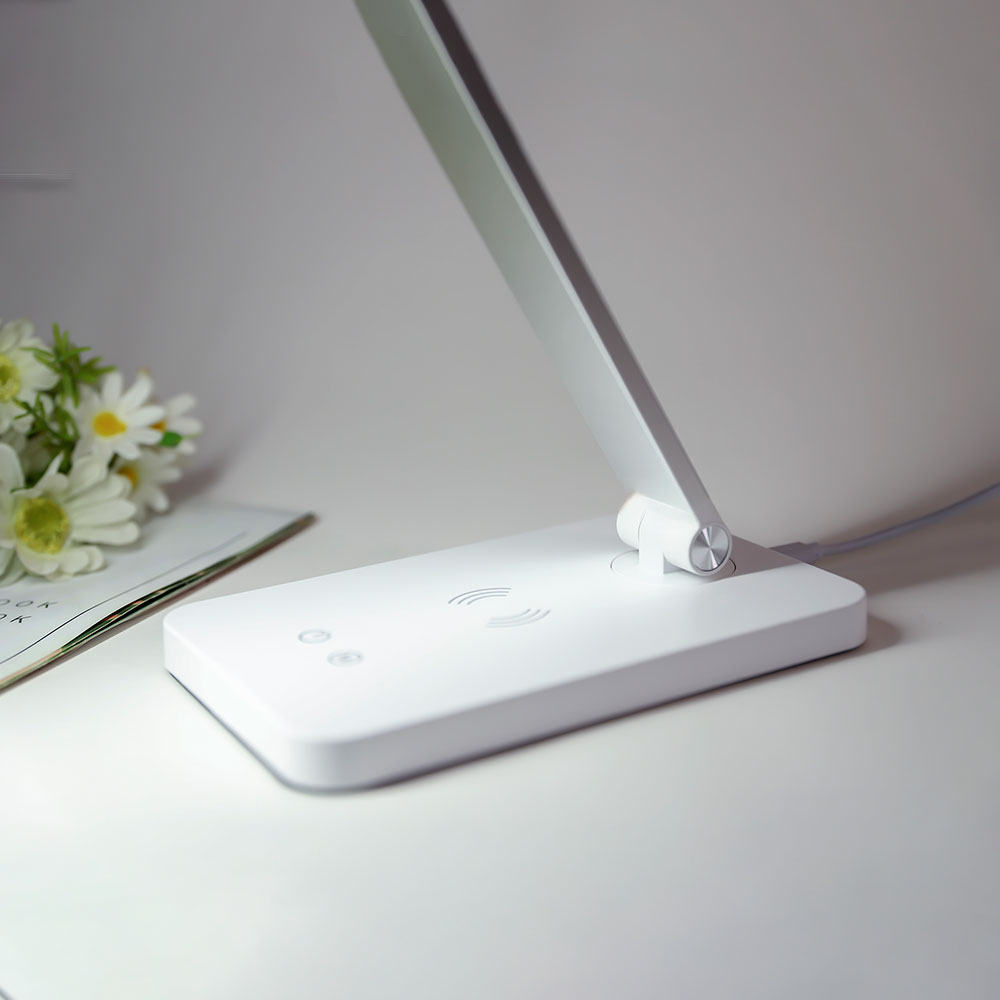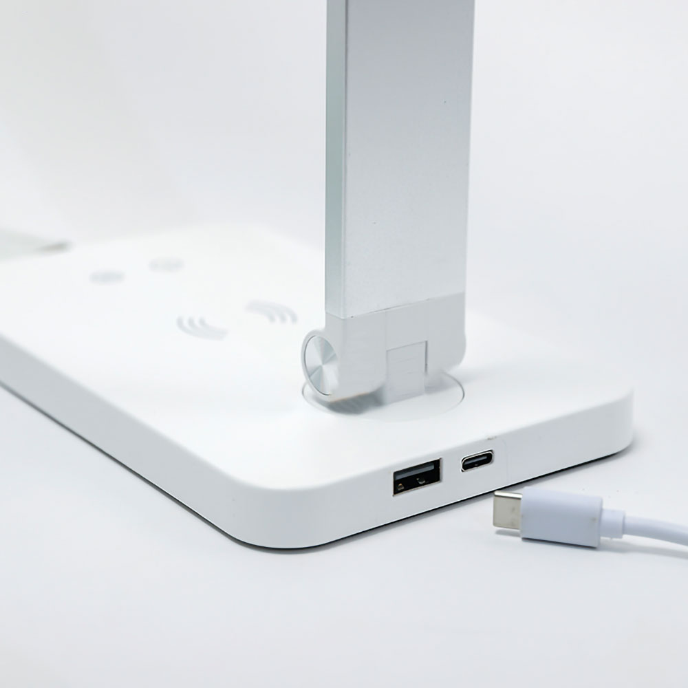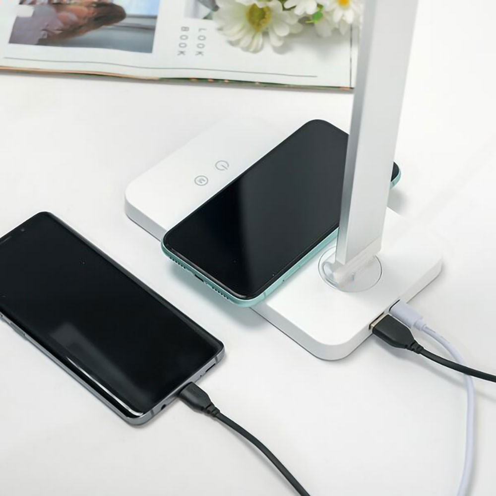 Điểm đặc biệt ở thiết kế của đèn bàn học chống cận SOKUNL L300 là ở phần chân đèn được trang bị sạc không dây dành cho điện thoại với công suất 5W. Kèm theo đó là một đầu ra USB 5V/3A được tích hợp để người dùng có thể cắm dây và sạc thêm một thiết bị nữa. Với thiết kế tích hợp này người dùng sẽ tiết kiệm được không gian sử dụng trên bàn làm việc và không cần phải trang bị thêm nhiều cốc sạc hoặc ổ điện xung quanh khu vực bàn học. Nhờ vậy mà có thể tối ưu hóa công năng của đèn và tạo nên sự thuận tiện cho người dùng.