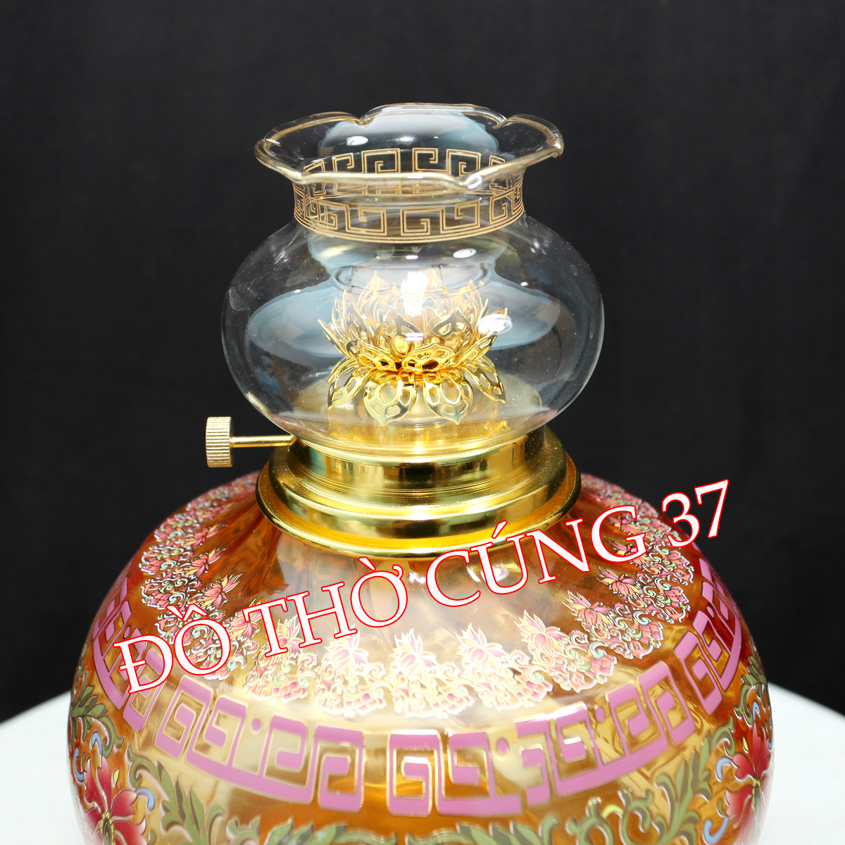 - Thân đèn bằng thủy tinh đựng dầu có hình HOA VĂN