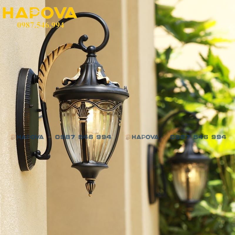 Đèn gắn tường trang trí ngoài trời HAPOVA 1302 đen + Tặng kèm bóng led AS Vàng