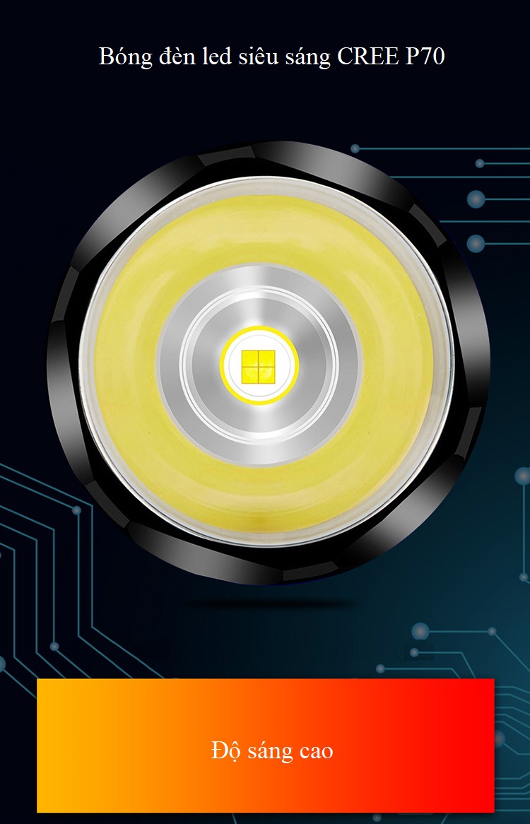 Tên sản phẩm: Đèn Pin Siêu Sáng Thân Kim Loại Siêu Cứng Độ Chiếu Sáng Xa XHP70