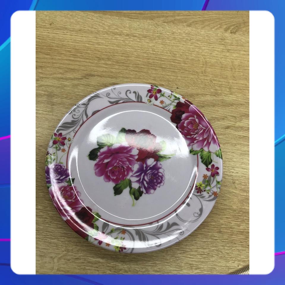 dĩa melamine tròn 7 ich cạn hoa văn bông xanh nền màu trắng ( 1 cái ) mã DC7