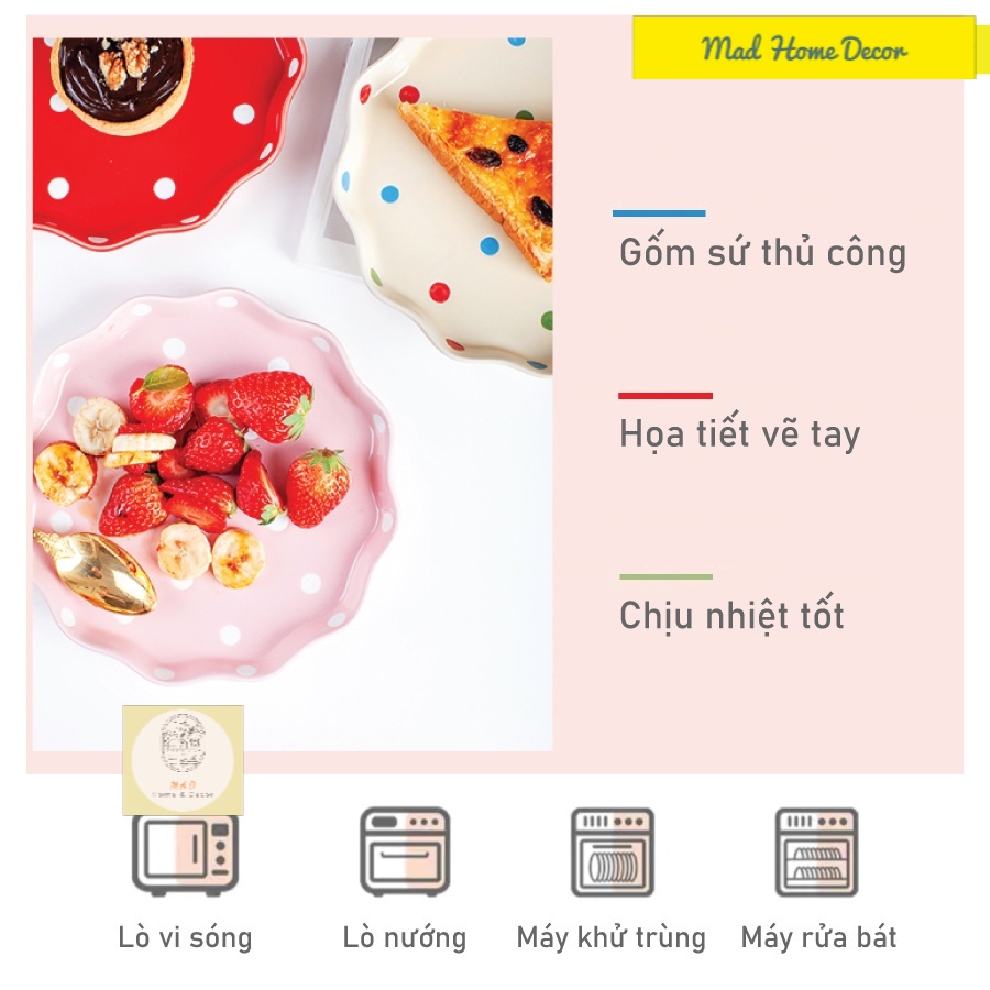 Giới thiệu Đĩa sứ tròn, khay nướng đựng đồ ăn hình tròn - Họa tiết chấm bi màu sắc sặc sỡ - Gốm sứ cao cấp an toàn sức khỏe