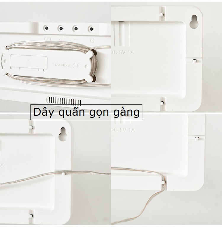 3. Điều chỉnh độ sáng mười cấp, giao diện USB. Thiết kế cuộn dây độc đáo ở mặt sau giúp tránh nhiễu dây, đẹp hơn và giữ cho ngôi nhà của bạn luôn ngăn nắp.