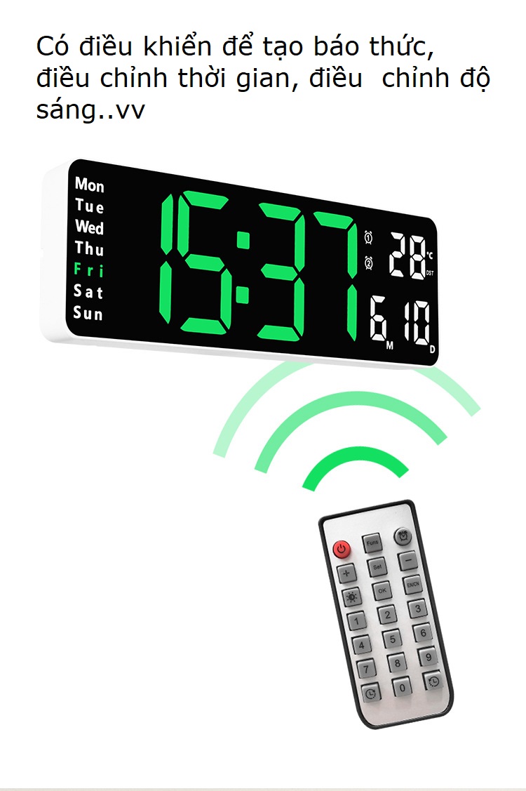 1. Đồng hồ treo tường đơn giản có đèn LED lớn, chức năng chuyển tiếp/đếm ngược độc đáo và cũng có thể hiển thị thời gian/ngày/nhiệt độ/tuần trên cùng một màn hình.