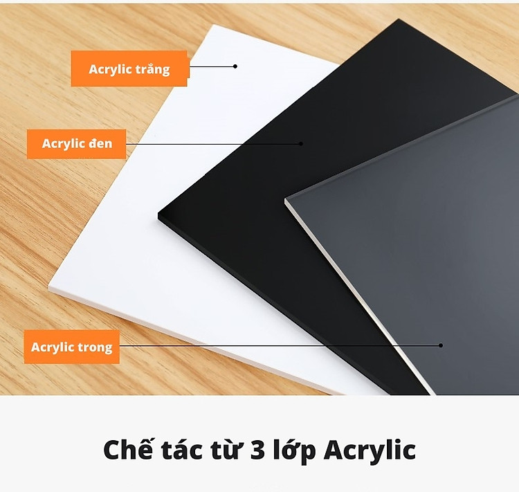 Bên cạnh việc sử dụng acrylic cao cấp của đài Loan để chế tác ra mặt đồng hồ treo tường, chúng tôi còn trang bị máy đồng hồ kim trôi và máy dao động con lắc cao cấp, được nhập khẩu từ đài loan. Giúp cho sản phẩm vận hành êm ái, không gây tiếng ồn vào ban đêm ảnh hưởng đến giấc ngủ của bạn và gia đình.